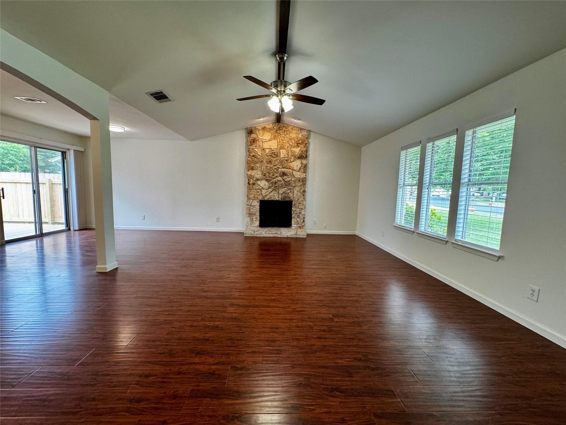 Beautifully refreshed 3-bedroom, 2 full-bath home offering 1,636 sq ft of comfortable living space. Inside, the home is filled with natural light and anchored by a dramatic living room featuring a cathedral-style ceiling and a striking brick fireplace that truly showcases the space. The open-concept layout connects the living room, dining area, and a second seating or flex space that overlooks the back patio, creating a welcoming flow ideal for both everyday living and entertaining. The recently updated kitchen shines with quartz countertops, a tile backsplash, refreshed cabinetry, and updated light fixtures, blending style with functionality. The home has been freshly painted inside and out, giving it a crisp, move-in-ready feel. The primary bedroom offers a peaceful retreat with easy access to a full bath, while two additional bedrooms provide flexibility for guests, home office, or family needs. Outdoors, enjoy a private backyard with new deck added in April 2026. Plenty of room to relax, garden, or entertain. One of the biggest highlights of this location is the abundance of nearby parks, trails, and pool amenities. Just steps from your front door, residents enjoy access to Old Stage Park, Harper Park, El Salido Park, Mill Run Park, North Park, and Pecan Creek Park, offering playgrounds, picnic areas, sports courts, dog-friendly spaces, and miles of hike-and-bike trails. Cool off in the summer at the nearby El Salido Pool, a community favorite with multiple pools and family-friendly features. Zoned to exceptional Round Rock ISD schools ? Purple Sage Elementary, Noel Grisham Middle, and Westwood High School. With quick access to Loop 1 (Mopac), 183, and 620, youre just minutes from The Domain, major employers, shopping, dining, and Downtown Austin.