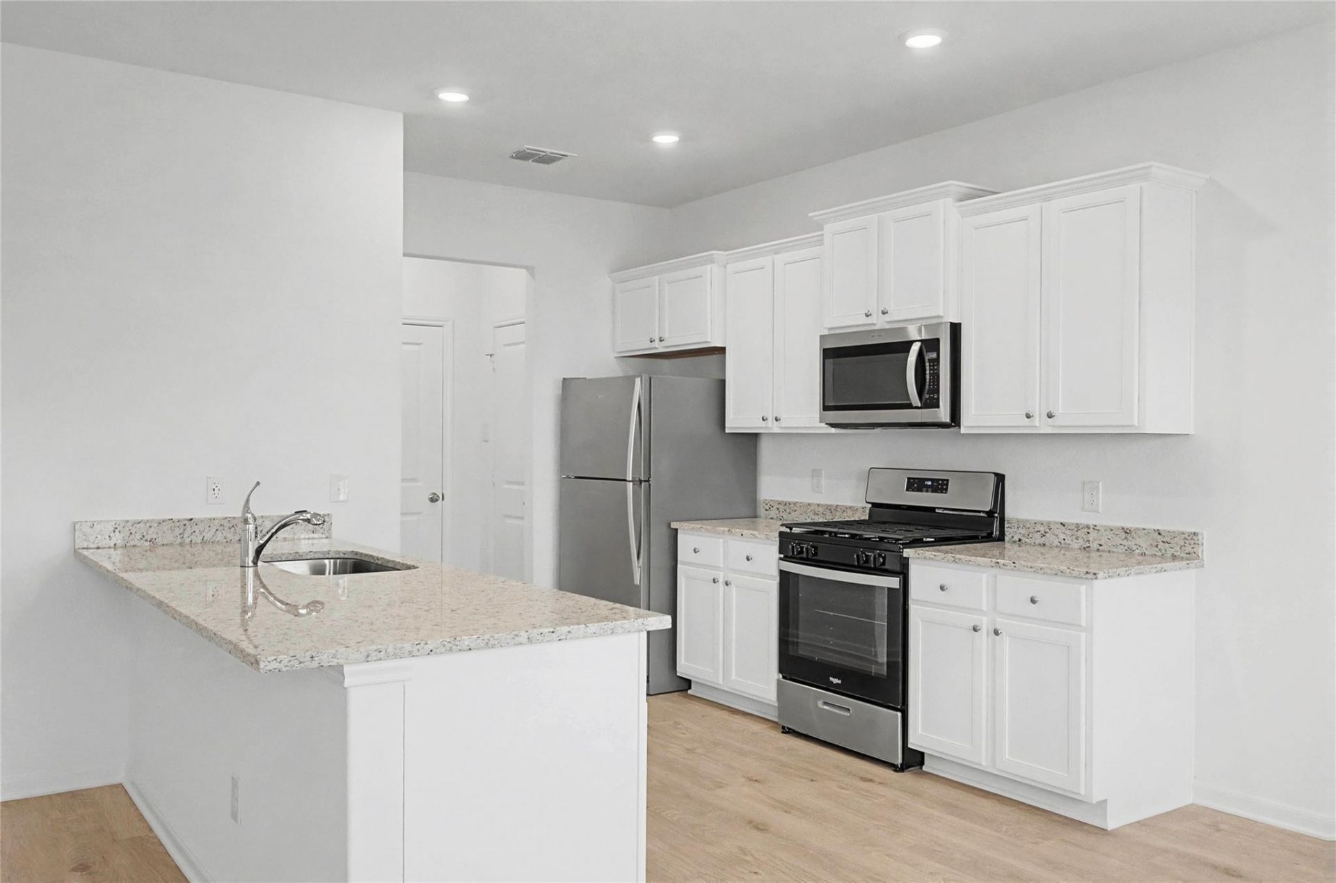 The two-story Mesquite plan overflows with charm and convenience for every day living! This three-bedroom, two-and-a-half bath plan gives you the living space you desire so no one feels cramped while visiting. The open-concept design of the first floor sets you up for easy entertaining and convenience. The kitchen overlooks the living room and dining area so you dont miss out on your favorite show or fun conversation while you cook. Upstairs, youll find the impressive master suite, along with two additional bedrooms and a laundry room.